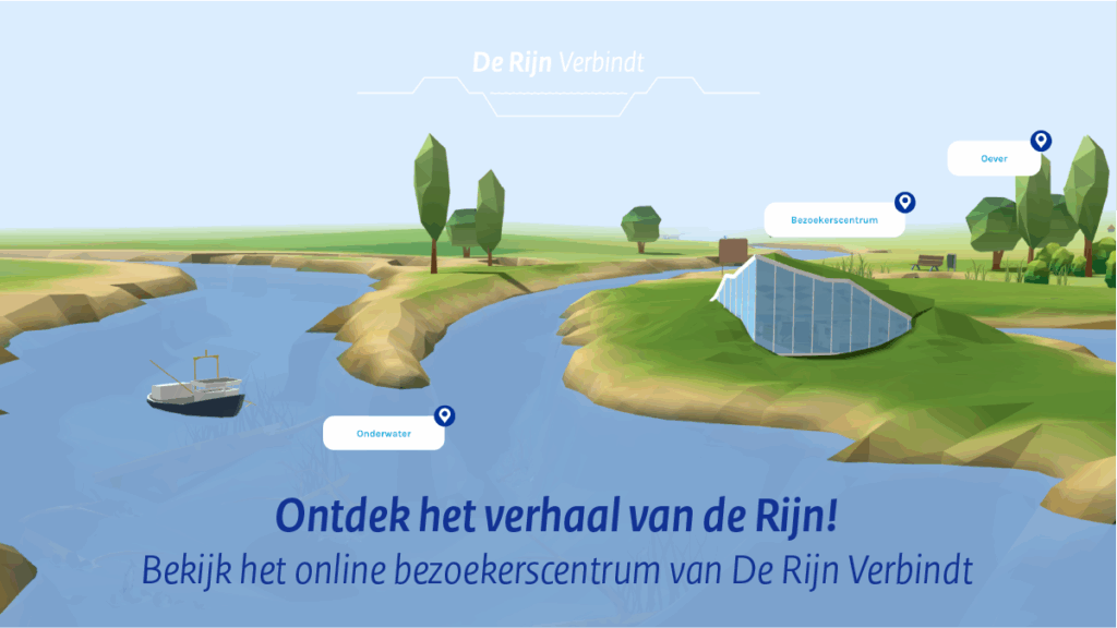 Vanaf vandaag kunnen geïnteresseerden De Rijn Verbindt op een geheel nieuwe manier beleven: het 3D-bezoekerscentrum is live! In een virtuele omgeving, gelegen op een fictieve locatie langs de Rijn, neem je een duik in de wereld van de rivier. Van geschiedenis tot biodiversiteit: alles waar De Rijn Verbindt voor staat komt aan bod.