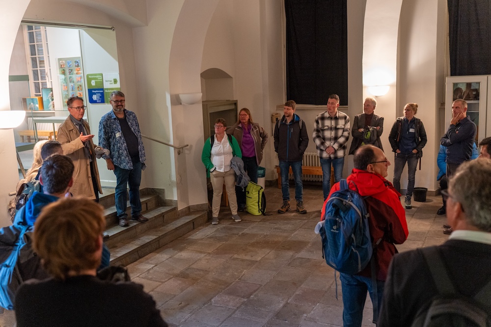 De dag begon met een wandelexcursie door de Urdenbacher Kämpe, een van de laatste onbedijkte uiterwaarden aan de Rijn. Onder begeleiding van Stefanie Egeling van het Biologische Station Haus Bürgel verkenden de deelnemers dit bijzondere natuurgebied waar het rivierwater nog vrij kan stromen en flora en fauna volop de ruimte krijgen. De wandeling bood niet alleen een inspirerende start van de dag, maar ook een fysieke herinnering aan waar De Rijn Verbindt zich voor inzet.
